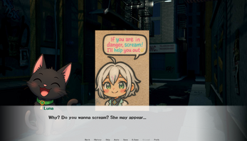 The game is an interactive narrative built in Ren’Py, where the player makes morally heavy choices that shape the story. You start getting attacked and meeting Lunette. The rest is up to you to discover.